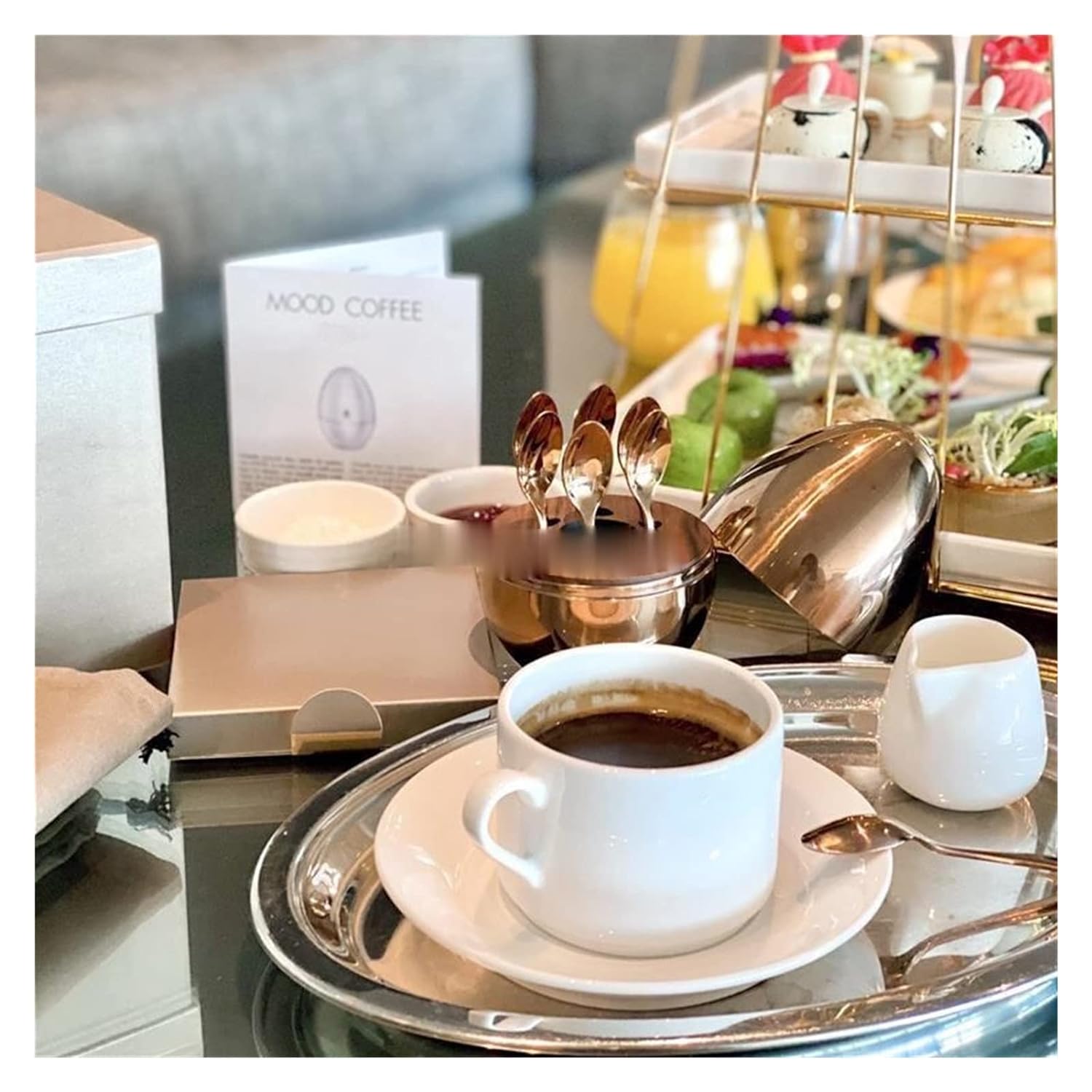 Golden Egg Shape Stainless steel Tea Spoon Holder with 6 Tea Spoons