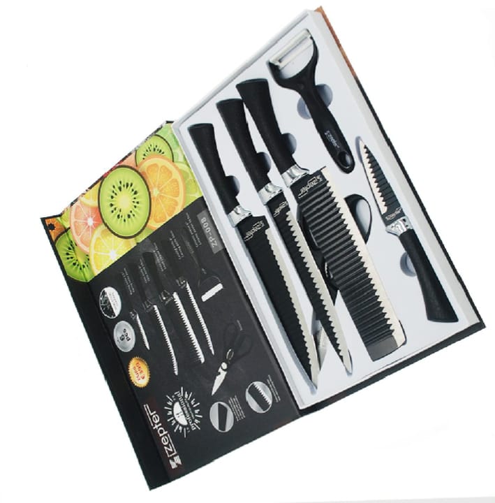 Hot sale Professional 6pcs kitchen knife set stainless steel black coating blade